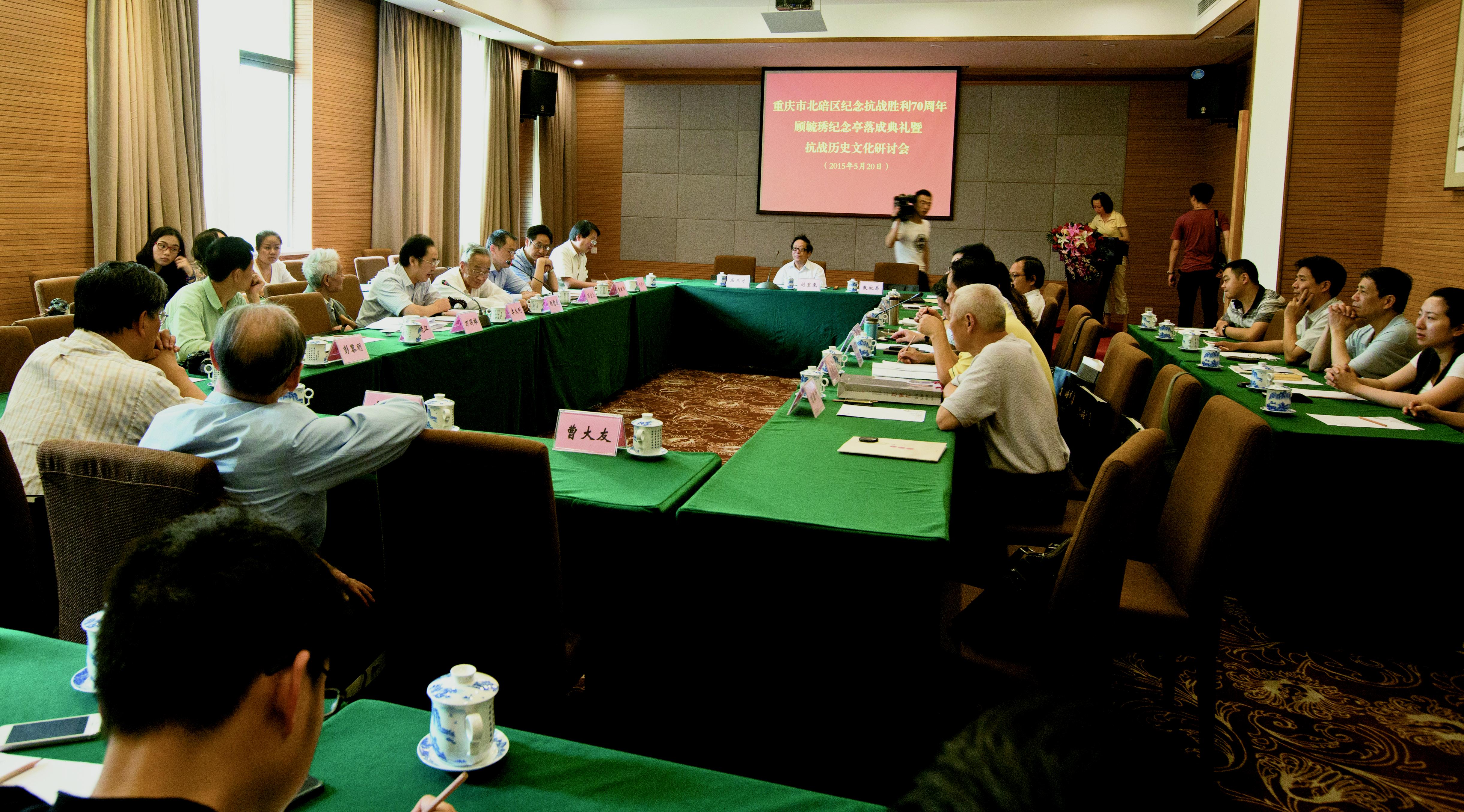 当日下午2时,来自北京、上海、南京、山东、重庆等地的专家学者齐聚位于抗日战争中同盟国军队牺牲的最高将领张自忠上将烈士陵园附近、北碚行政中心旁的寄北酒店会议厅,举行抗战历史文化研讨会,共同缅怀顾毓琇先生在文理、教育诸方面的杰出贡献和爱国情怀。赵国方代表南大校友总会,彭黎明代表中大南大重庆校友会出席了研讨会。