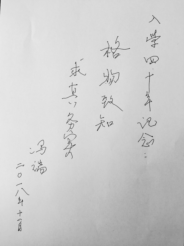 我辈有幸,得蒙大家厚爱,赐以墨宝助兴:聚会前夕,二位德高望重的老人欣然命笔,以“入学四十年纪念”为主题,书字题词,各臻其妙。