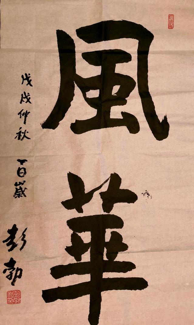 百岁老人、八路军老战士、原“临汾旅”和江苏省军区政委彭勃将军大书:“风华”二字,以资鼓励;