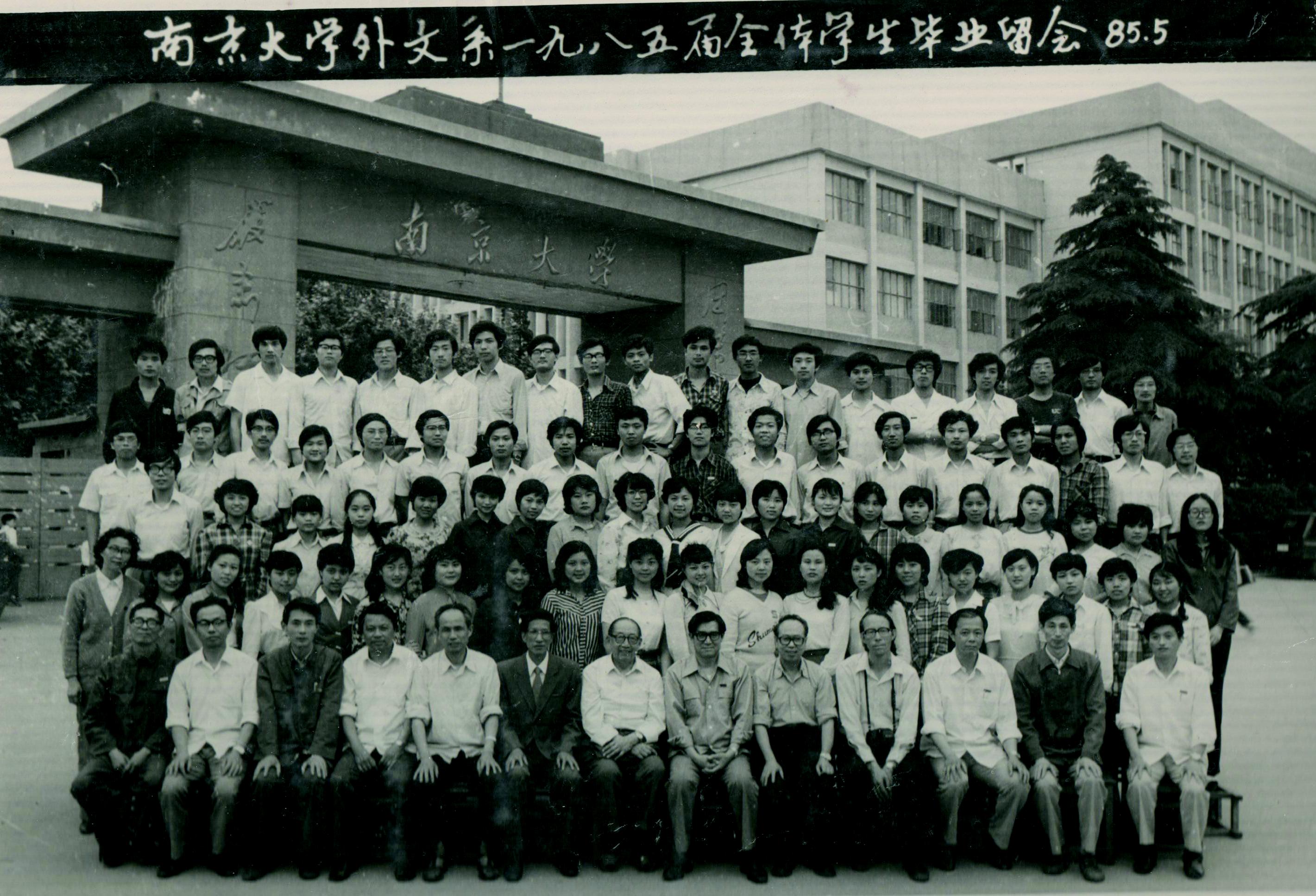 北园的树木比印象中更加参天,北大楼却还是记忆里那样古朴。我们踩着从前的脚印寻找当年,匆匆路过的年轻的在校生们眼含笑意地看着大呼小叫踩着雨水奔跑的我们。“瞧,图书馆!”已是总编的王理行说:我们刚入学就参加了老馆往新馆的图书搬运!“哈!斗鸡闸!”薛剑英说我们第一次参加的外事接待就在这里,外交部的今天是斗鸡闸的打底!“嘿!外文系的小院!”定居明州已是一口美音的周东发说,那些有着扶手椅的教室和有着老虎窗的地下听力室陪我们年复一年地学了四年!“操场还是原来的样子吗?”当年校篮球队的徐丽娟问。那时候我们每天早晨站在台阶上朗读英德法俄啊!“大礼堂原来这么小吗!”常驻联合国的蒋玲媛惊叹,新生入学的第一次大会匡亚明先生就是在这里对我们入校训话!是啊,是啊!这是看《红高粱》的礼堂,是听法国总统密特朗演讲的礼堂,是校园所有晚会的礼堂!