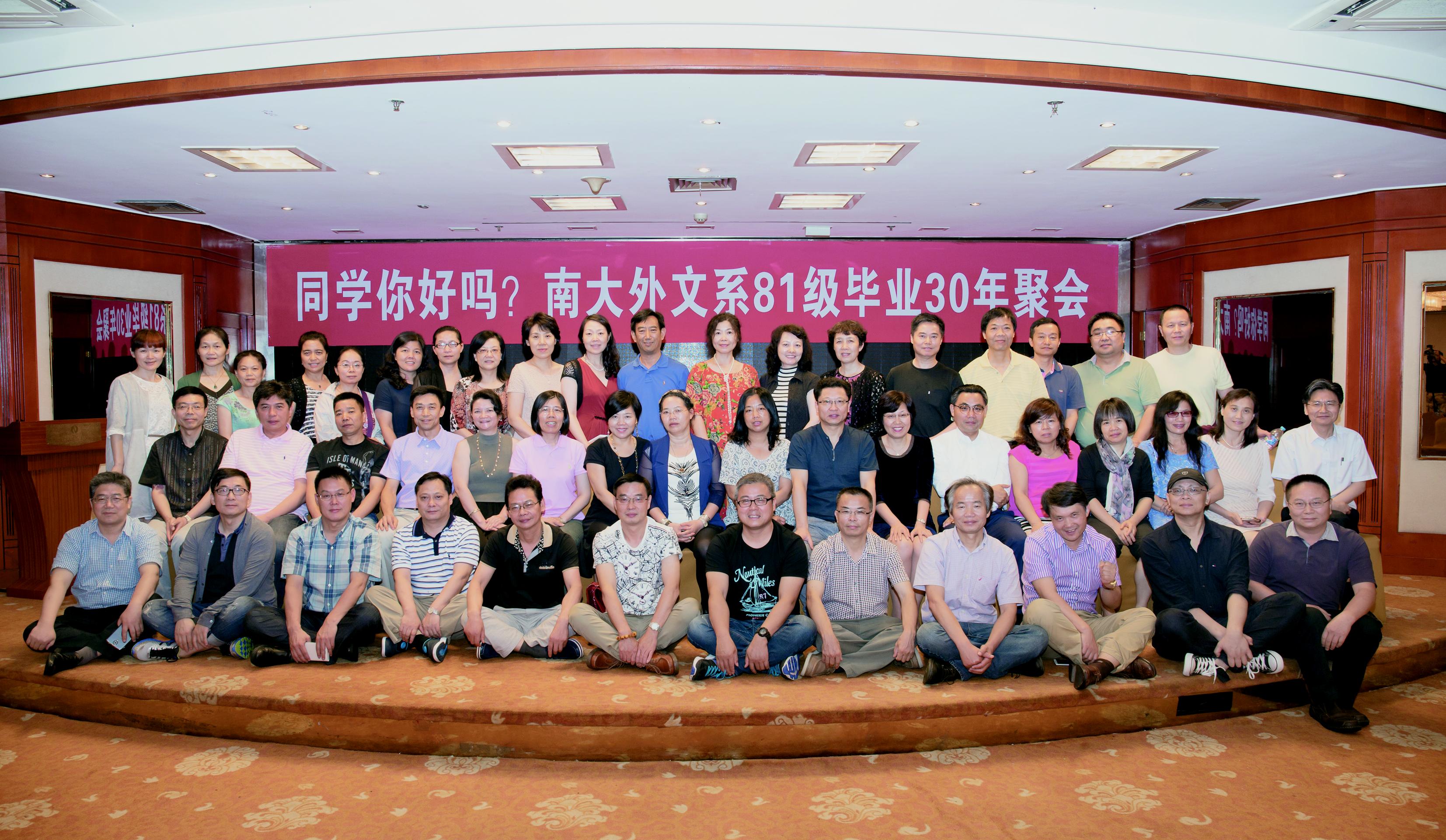 外文系1981级有同学91人,刘圣春、李苏菲同学负责的“失联呼叫中心”找回并恢复联系88人。6月27日返校52人,来自四大洲18个城市。