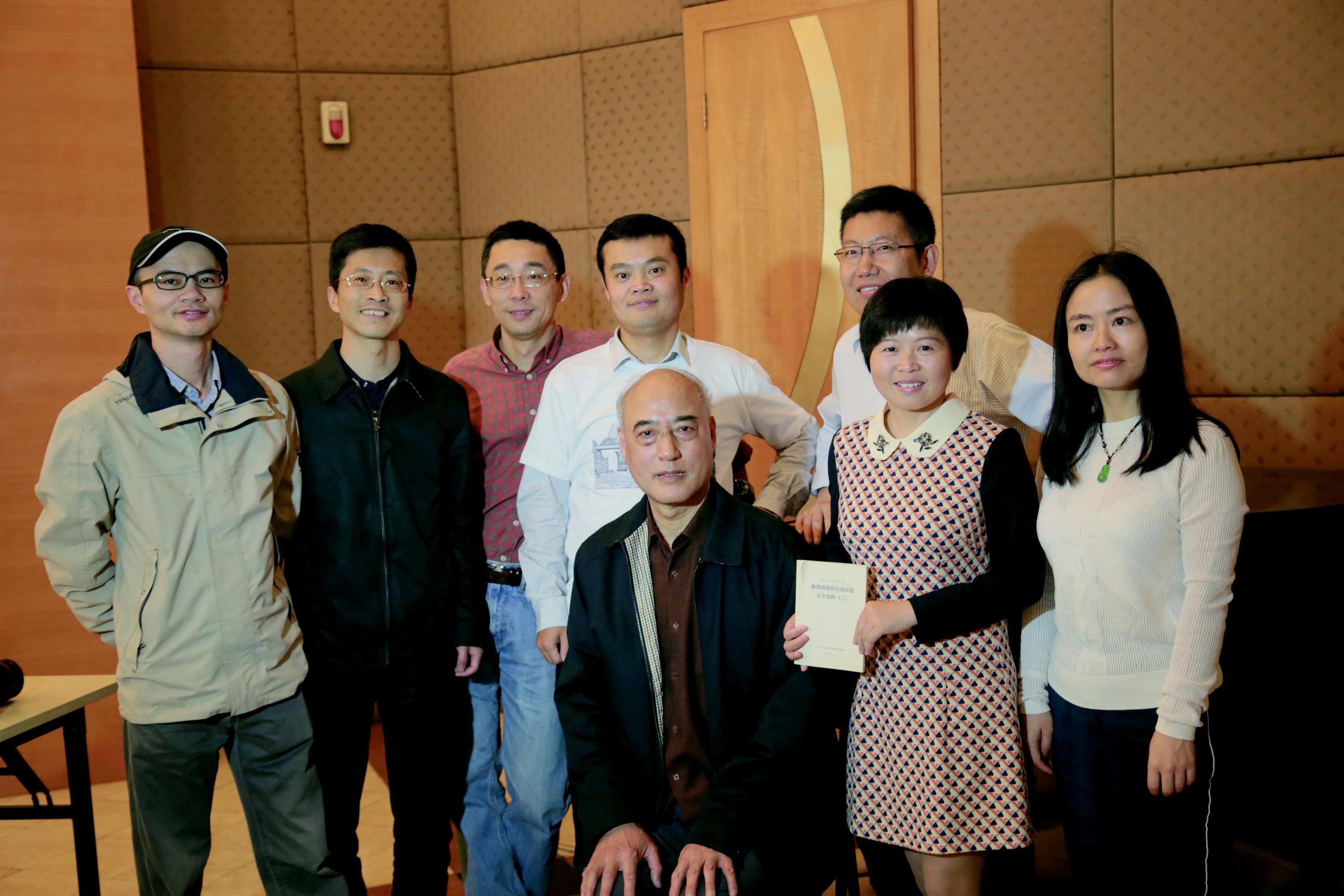 这次聚会让人非常开心的是见到了高小方老师。23日早上,我们一到聚会大厅就看到了高老师,高老师精神状态很好,和二十年前相比没有很大的变化,只是头发都白了。那时大厅里的同学还不多,只有袁建阳和黄海燕,于是我们与高老师围坐交谈,高老师告诉我们,他现在身体还好,工作还很多,既要带博士生,又在南大和三江学院上课,还要编写辞典,每天凌晨2点就起来开始工作,日工作时长达18小时,这让我们惊叹,钦敬不已,要知道高老师已经68岁高龄了。他还特意带来了1994年暑假研习班的论文集。94年暑假的研习班,是高老师指导的,我也是当年研习班的一员,记得那年暑假非常热,我们十几个同学跟着高老师在文科楼的资料室里学习,高老师每天清早就来了,悉心指导着我们这些从没做过研究的学生,最后每个同学都完成了论文,高老师还帮着编印成册。这次高老师带来了当年的这本论文集,他提出要和这些同学再合个影。我们再次站在高老师的身旁,幸福地望着相机的快门。遗憾的是高老师和我们相聚的时光比较短暂,因为十点钟他有个学术会议要参加,他在离开前对大家发表了临别寄语,表达了他对同学们的殷殷期待。