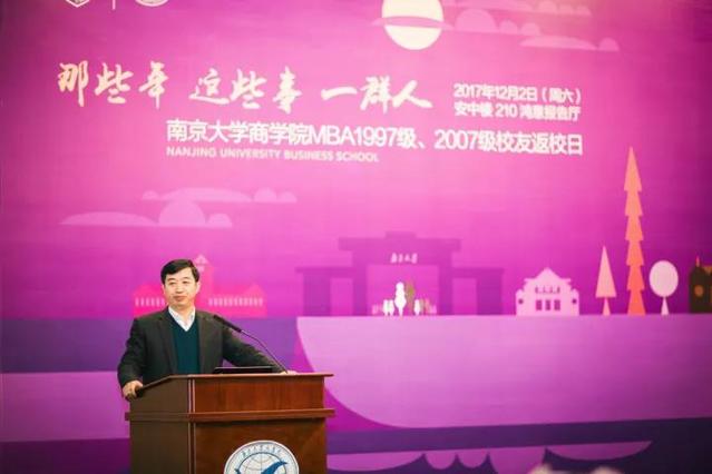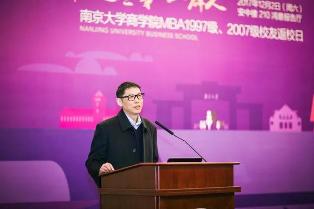 商学院人力资源管理学系彭纪生教授作为教师代表寄语。“百战归来仍少年”:从传统管理学角度剖析了“近十年的商界躁动”以及不断涌现的新的管理词汇,呼吁大家返璞归真、重温经典,坚守、坚信管理学本质;深度剖析商业本质及企业管理创新的基本逻辑,弘扬“大道至简”的管理精神。