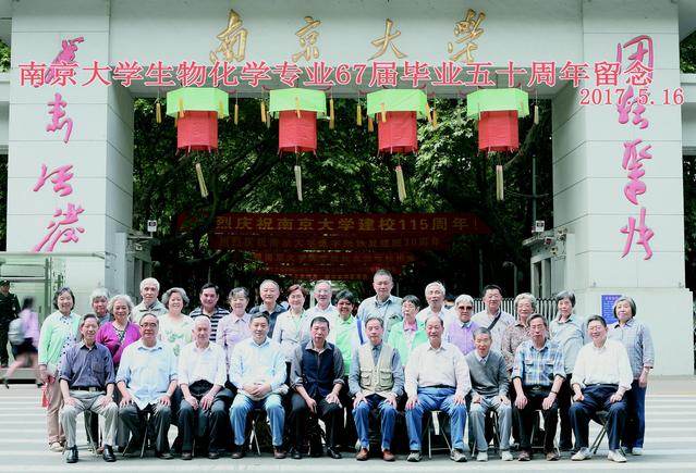 5月的betway必威西,梧桐枝繁叶茂、遮天蔽日,松柏刚劲挺拔、青翠欲滴。南大生化专业1967届(因“文革”永远定格为“生化四”)的同学们从海内外各地,回到阔别50年、久久思念的母校,祝贺母校115周年华诞,感谢老师的培育之恩,实现全班同学毕业后的第五次聚会。