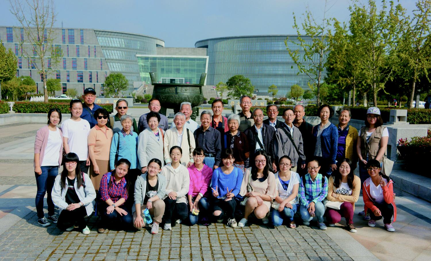 参观校园时,校友总会安排了学生校友发展中心的志愿者陪同我们参观。特别是仙林校区的十几位学生志愿者,亲切的服务,热情周到的介绍,充满活力的举止,也把我们带回那青葱岁月。参观期间,爷爷奶奶级的我们和志愿者们合影留念,还互加微信好友,以保持经常的联系。