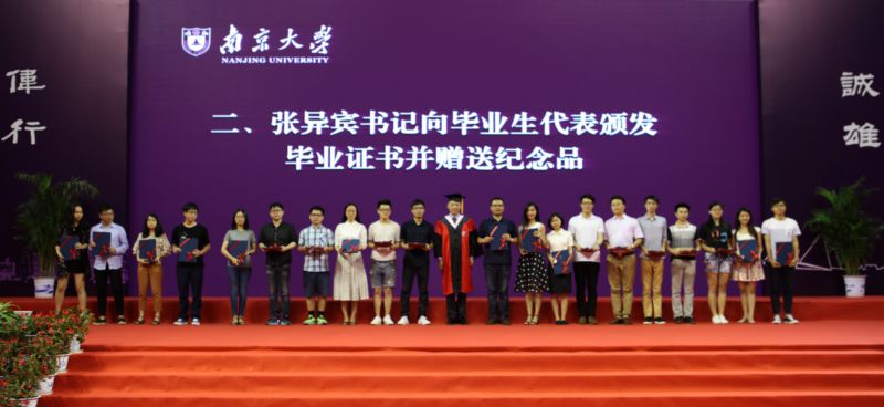 现代工程与应用科学学院2014级博士毕业生邵光灏作为毕业生代表发言。他深情地回顾了自己在南大的求学生涯,并围绕校训“诚朴雄伟,励学敦行”的“诚”和校歌中的“知”、“仁”、“勇”畅谈自己对南大人的品质、追求、做人准则、处世态度的理解。他的发言饱含着即将离开母校的全体毕业生对师长的感激、对母校的不舍与祝福。