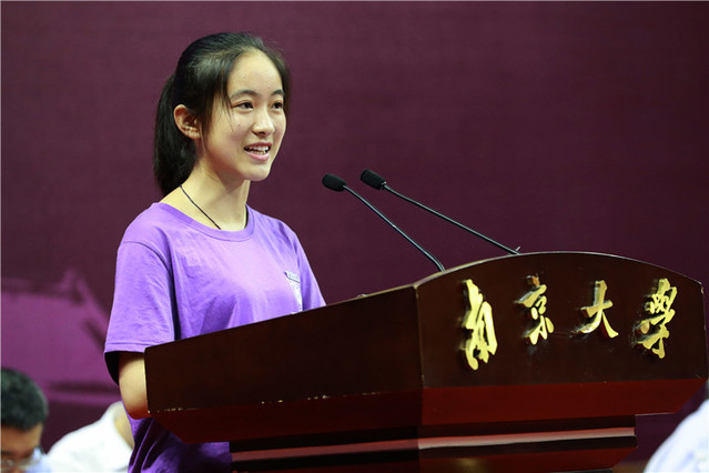 2018级经济管理试验班马依航同学作为新生代表发言。她表示,“最好的本科教育在南大”,“三三制”的培养计划让我们在这里放飞无限梦想。作为新时代的一员,她满怀憧憬,说出了2018级全体同学的心声,表达了同学们对学校的深厚感情、对大学生活的期待和勤奋求知的决心。