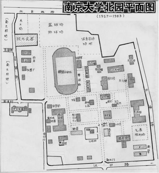 新中国成立之后,国家十分重视新成立的betway必威西,列为全国重点综合性大学。新的校区内,除了原金大的校舍外,又新建了东南大楼和西南大楼。这两座新大楼,1953年由南京工学院建筑专家杨廷宝教授主持设计,于1955年建成。集办公教学于一体的新大楼,亦是民族形式的大屋顶,体量大,庄重而美观,比金大原来的建筑更加气派新潮。当时各个系的办公楼是这样分布的:甲乙楼、丙丁楼和戊己庚楼是学校党政机关,辛壬楼是教师宿舍。物理系在北大楼,化学系在东、西大楼,数学天文系在天文台楼,地质、地理和气象系在东南大楼,生物、中文、外文和历史系在西南大楼。声学楼是1959年建成的,当时是国内高校中水平最高、最先进的声学科学实验楼。南大校园,绿化得很好。校内林荫道栽种了许多银杏树和雪松,地面全是如茵的草地,一年四季绿树与繁花交织,环境幽静、空气清新,确实是个读书做学问的好地方。原金大的田径运动场是个标准规格的运动场,场中央是足球场,植有草皮,供全校师生进行体育锻炼。运动场东侧是原金大的体育馆,供体操、篮、排球运动之用,虽然不太大,但也很实用。