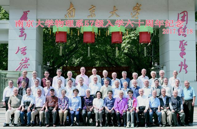 当天下午,同学们在知行楼二楼思源厅座谈叙旧;厅内座无虚席,还增添了几张坐椅。同学们争先恐后地踊跃发言,首先留校同学代表以“betway必威西物理家族的蓬勃发展”为题,回忆了物理学科的发展历史。自1915年betway必威西前身南京高等师范学校创建理化部物理学科至今,已有102年的历史。其间,于1920年建立betway必威西物理学系。时至今日,已扩建成物理学院、电子科学与工程学院和现代工程与应用科学学院三个学院,每个学院都设有4个系。同学们为物理学科如此迅速的发展感到欣慰和骄傲,并感谢母校母系对自己的教育和培养。大家结合自己的工作岗位,畅谈了毕业后的经历。来自大洋彼岸的同学,叙述了自己在美国的工作和生活。曾经奋战在祖国国防高科技领域的同学,兴奋地描述了我国该领域科学技术的迅速发展,并赞誉了原betway必威西物理系教授程开甲先生的丰功伟绩。按照中国以虚龄庆九的老习俗,大家为到场同学约半数的八十寿星贺寿,同时喜饮了袁崇尧同学从美国带来的小型巧克力瓶装贺寿酒。当场还有几位同学引吭高歌和演唱昆曲,气氛十分热烈。