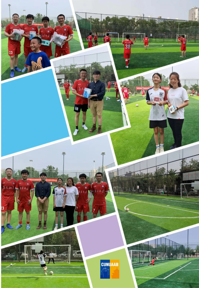 多位赞助商代表、球员及家属、拉拉队员们的心聚在一起,跟着黑白的精灵在草坪上跳动,在趣味点球和任意球的不确定落点间飞驰。欢声笑语中,飞扬的汗水挥洒着每个球员的激情,在点球大赛中达到高潮,酣畅淋漓的点射之后,释放运动压力的队员们,共同感悟到球队为母校庆生中那份不寻常的意义——诚朴雄伟,励学敦行——是母校赐予了我们每个人新的人生。