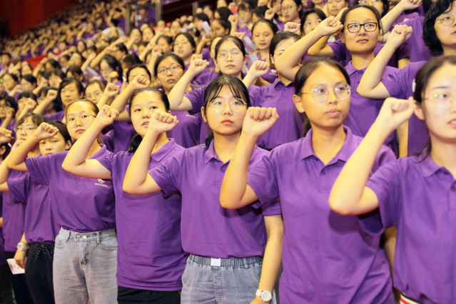 在社科试验班2019级本科生曹彬的带领下,全体新生进行了入学宣誓。