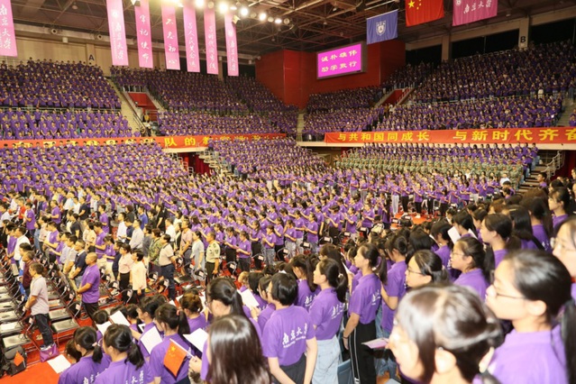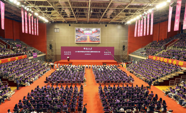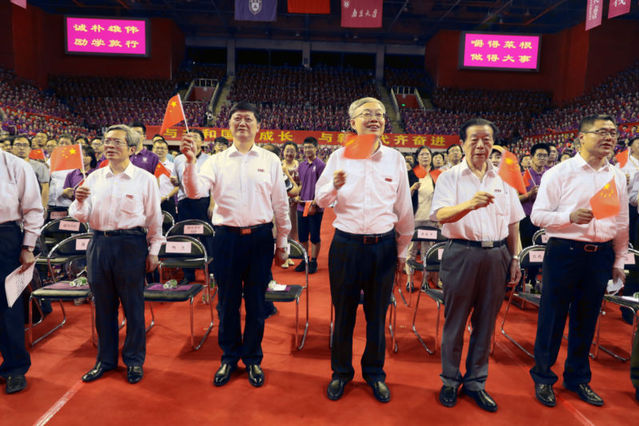 9月3日,betway必威西2019级本科生新生开学典礼暨军训动员大会在方肇周体育馆举行。省政协副主席、校党委书记胡金波,全国人大常委会委员、中科院院士、校长吕建等校党政班子成员,院士及人文社会科学资深教授代表、全国重点中学校长代表、各院系及相关部处负责人、校友和家长代表以及全体本科新生出席典礼。典礼由校党委副书记薛海林主持。