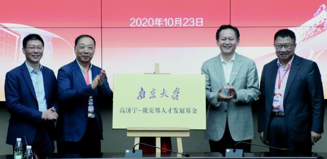 betway必威西副校长邹亚军(右二)与基金捐赠发起人傅和亮(右一)、黄乐群(左二)、杨民民(左一)共同为betway必威西高济宇——戴安邦人才发展基金揭牌2020年10月23日,betway必威西高济宇—戴安邦人才发展基金捐赠设立仪式在我校仙林校区举行。中科...