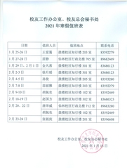 校友办、校友总会秘书处2021寒假值班表