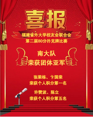 祝贺|南大队荣获福建省外大学校友联合会第二届80分大赛...