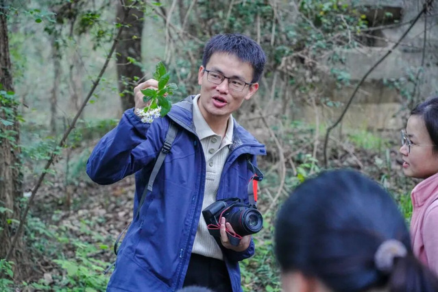 活动特别邀请到了南大环规院植物专家陪同讲解。在徒步过程中,专家就紫金山植被分布、沿途植物种类等专业知识进行了讲解介绍,路旁的鸡屎藤、麻栎等植物引得众人饶有兴致地围观辨认与讨论,为整个行程增添了许多欢声笑语,氛围生动而愉悦。