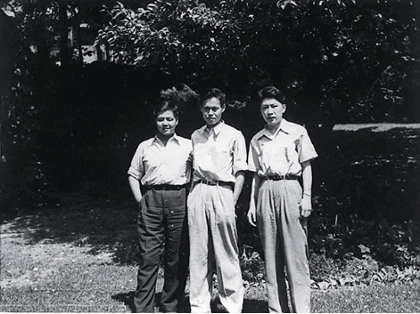 1947年,朱光亚在美国密歇根大学研究生院学习时留影(左起李政道、杨振宁、朱光亚)