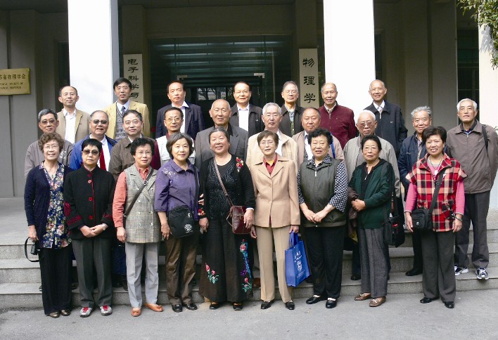 物理系60级无线电专业部分校友50年后再相聚于物理楼前