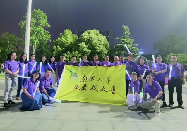 我们都穿上了早就定制好的安徽校友会祝福母校百廿华诞的南大紫T恤,手舞彩光四射的荧光棒,胳膊套上多少不一的荧光手环,无论青丝白发,全部像那欢乐的孩子啊,尽情祝福母校生日快乐!