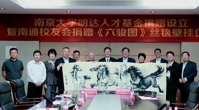 2022年5月17日,南通校友会向母校捐赠“六骏图”丝毯壁挂仪式在仙林校区举行。南通校友会会长石明达、副会长黄鹤群,betway必威西副校长邹亚军等出席仪式。