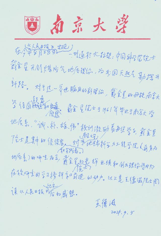 投身地质科学,既是兴趣使然,也蕴含着一名青年的报国之志。上世纪50年代,正值国家大规模建设时期,急需各类矿产资源。还在读高中的戴金星广泛涉猎地质科普读物,思考地质领域的问题,还在班级活动中特意组织大家合唱曾激励了一代又一代地质工作者的《勘探队员之歌》。时至今日,戴金星依然清晰记得每一句歌词:“背起了我们的行装,攀上了层层的山峰,我们满怀无限的希望,为祖国寻找出丰富的矿藏……”
