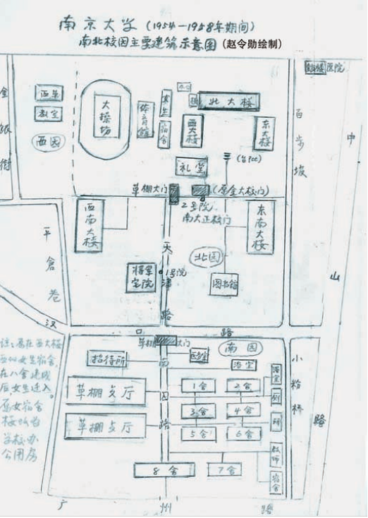 图二 南大校园示意图(1954-1958年,赵令勋绘制)