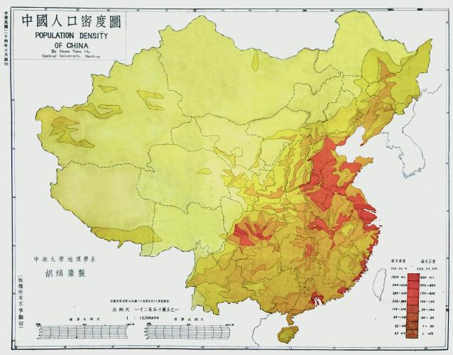 胡焕庸教授一生著作甚丰,他于1935年6月提出划分中国人口的东南与西北两大基本差异区并以瑷珲—腾冲线为界,被称为“胡焕庸线”。