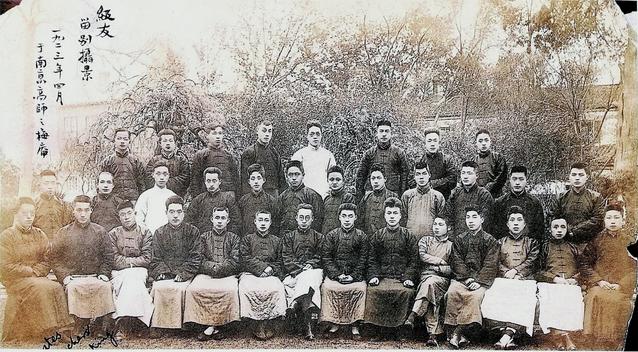 南京高等师范学校文史地部第一级毕业生留影,后排左四胡焕庸(1923)