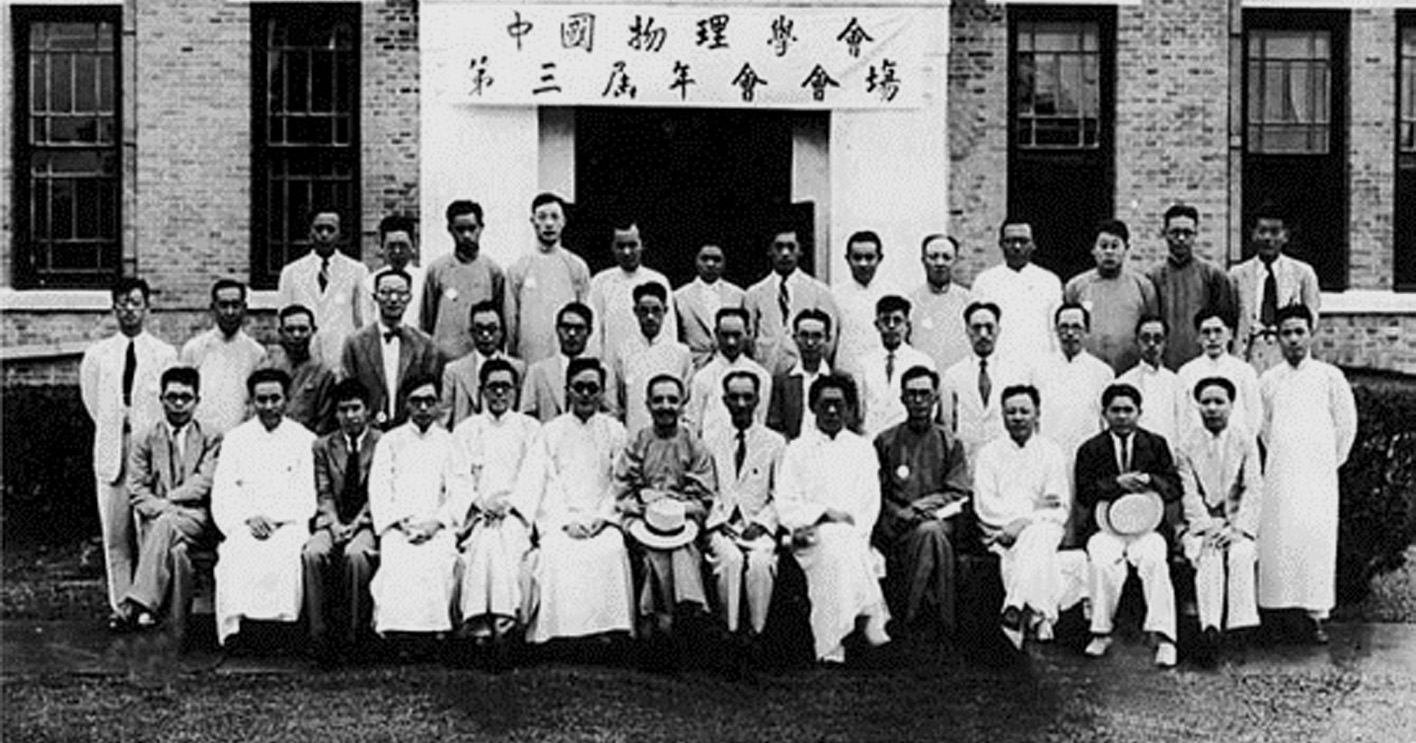 图为 中国物理学会第三届年会在中央大学召开时与会人员合影 (前排左一严济慈,左五吴有训,1934年)