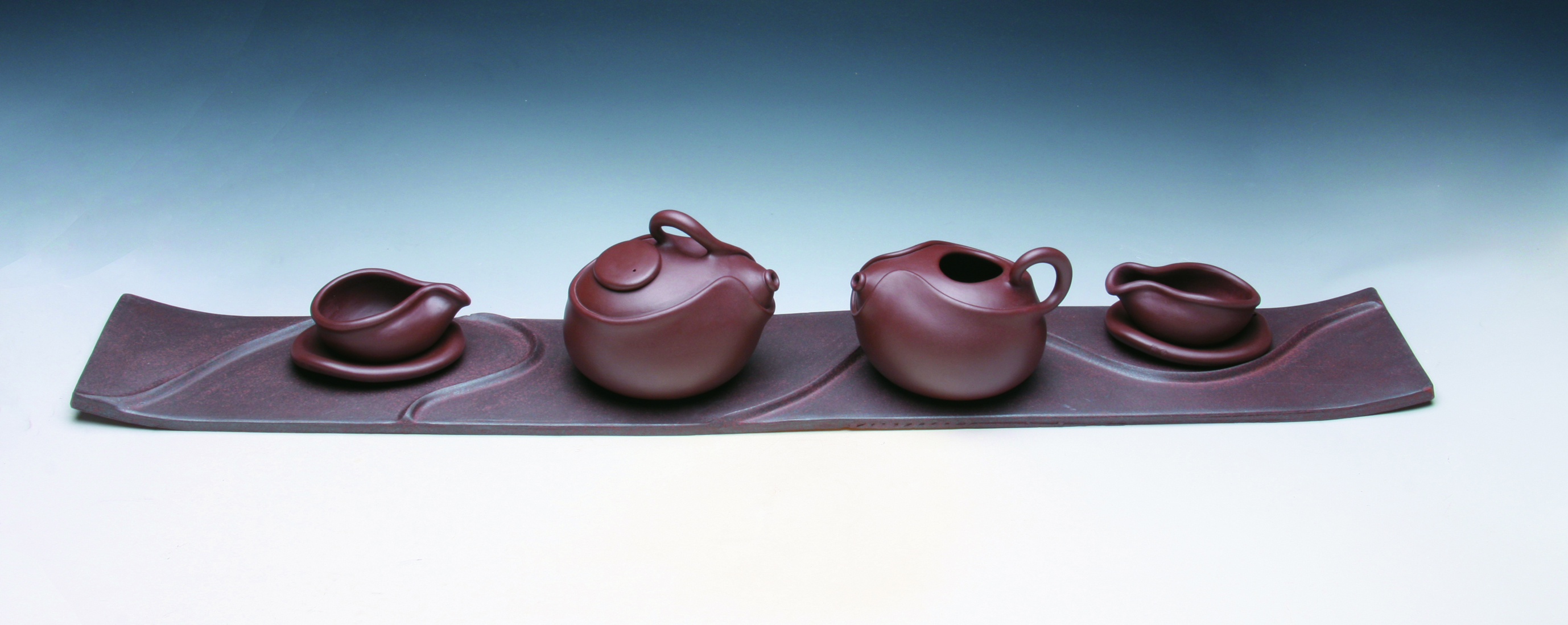 《弥勒壶》是董亚平的又一首创新曲。她成功地凸现出紫砂材料是各种雕塑、装饰等传统艺术较好的载体,能象征受众对美好生活的向往。不过,董亚平从来都不满足现有的成绩的。所以,她在完成了《弥勒壶》的创作之后,又产生了“寻求新欢”的创作冲动,决定再创作一套《禅缘组壶》。她的构思是:在造型结构上,寻求凸现出紫砂传统设计和概念中,没有完全的对称、没有居中的线条、也没有规正的形体,受众也可以尝试从正、反、俯视、侧视等各不同方位、不同角度来打量作品。同时,寻求用新奇的视角和独特的方式,来重新审视紫砂艺术作品。她所寄希望的《禅缘组壶》是对传统的紫砂造型艺术的一种挑战和超越的艺术实践。实践证明,董亚平的这一挑战和超越的艺术实践成功了!遗憾的是,笔者没有亲眼看到实体的《禅缘组壶》,只是看到一组从各个不同角度拍摄的图片。尽管如此,它仍能让笔者感悟到,这种抽象含蓄的《禅缘组壶》,是那么令人惊讶奇异,这真是至真至美、怪而生趣、奇而生动、异而生美,任人想像评述,又能在冥冥中体现中国传统文化和佛学中的禅语和真谛。这可以说,《禅缘组壶》是董亚平最佳毕业创新作品。也是她短短几年的业余紫砂创新成就。曾经有人问她:“会把紫砂当成自己一辈子的事业去坚持吗?董亚平脱口而出说:“按照我现在做紫砂的痴迷程度,我会坚持到老,因为没有什么可以吸引我去花大量的时间和精力再去换方向。”董亚平想:“紫砂泥是一种高贵的‘五色土’,它能够化腐朽为神奇,能够变成自己所追求的艺术作品,其乐无穷,舍它寻谁?”她要为紫砂艺术的创新高歌猛进。如她所说,她要把看到的东西和自己的思考巧妙地结合在紫砂艺术上。如何在前人的基础上进行造型设计的创新成了她此后很长一段时间内,冥思苦想的问题,也是她紫砂创新探索的目标。笔者真诚地祝愿董亚平不仅是紫砂设计制作的探索者,也能成为紫砂造型艺术创新潮流的引领者。