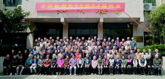 2019年4月26-29日,南大物理系1959级入学的同学们,又从天南海北汇聚到母校。在这美好的季节里,115名同学吹拂着和煦的春风,欣赏着绚丽的春花,沐浴着温暖的阳光,怀着对母校对同窗的深情厚意,聚集到南大南苑。