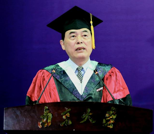 中科院院士、校长陈骏以“嚼得菜根香 立志做大事”为题作毕业演讲。他对同学们提出四点希望:一是吃得了“苦”,把磨难当作老师,把艰苦环境作为磨炼自己的机遇;二是耐得住“酸”,修炼宠辱不惊的心理素质;三是顶得住“辣”,在紧要关头、复杂局面、关键环节面前,敢做先锋,当仁不让;四是经得住“甜”,保持谦虚谨慎的态度和忧患意识,走得更远、飞得更高。