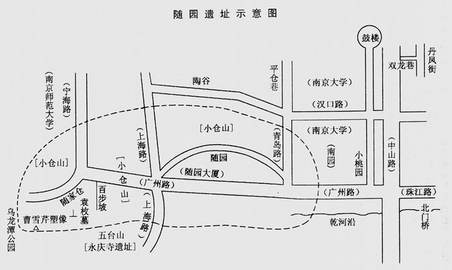再如,清人袁枚《随园诗话》称:“雪芹撰《红楼梦》一部,备记风月繁华之盛,中有所谓大观园者,即余之随园也。”吴新雷复采取实地调查与文献调查相结合的方法,一方面弄清了随园遗址的所在位置,一方面又弄清了大观园与随园的关系。他在《随园与大观园的关系》一文中指出:“随园遗址在今南京市广州路两侧,东起干河沿(betway必威西广州路口)、青岛路,西至随家仓、乌龙潭,而以小仓山为中心。”他还画了《随园遗址示意图》,该图让人对随园遗址了如指掌。作者还依据陈诒绂《金陵园墅志》,指出曹家所谓大观园源自明末吴应箕开创的吴氏园,复依据隋赫德《细查曹頫房地产及家人情形折》,指出该园在曹家被抄家后为隋赫德所有,遂名随园。之后随园复为袁枚所有。今亦将其实地察勘部分录之如下: