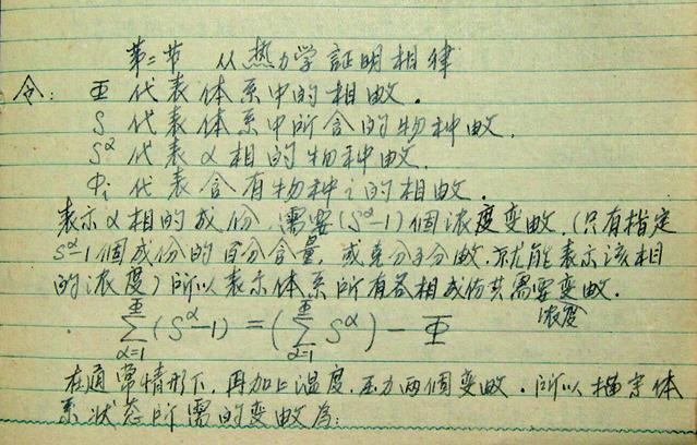 “有机化学”、“物理化学”等是在“坐下来,钻进去”的气氛中学习的。陈懿老师讲的“物理化学”、付献彩老师讲的“统计热力学”等,黑板上有详尽的、系统的理论公式推导。例如,陈老师在课堂上从热力学证明了相律。理论证明,是一种科学方法,可以培养学生的原创性的科学思维,为我这个物理化学专业的毕业生以后的工作打下了良好的理论基础。工作后,理论证明和公式推导等成了我发表科学论文的创新点之一。