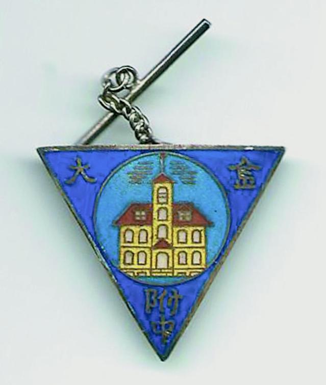 金大附中教职员所佩徽章,中心图案即汇文书院(金大暨金中)之钟楼 图片来源:范益之收藏,孙建英提供