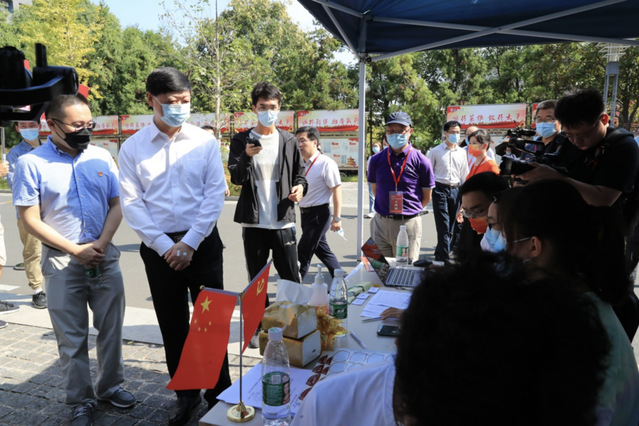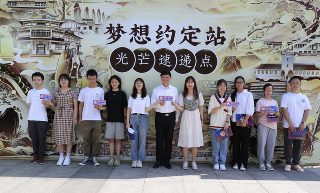 梦想约定卡拼接仪式是南大新生的独特“福利”,新生携带梦想约定卡主卡,并联系好持有对应副卡的学长学姐,即可一同前往梦想约定站完成卡片对接仪式,兑换奖品。胡金波为10位“梦想大使”代表现场颁发了聘书,这些新“南大人”通过南星梦想计划实现梦想约定,并将梦想的力量传递给未来的学弟学妹,始于感恩,成于传承。随后,胡金波走访慰问了值守在各大书院和宿舍接待点的工作人员和志愿者们。