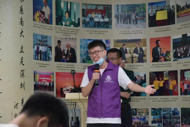 深圳市南京高校联盟秘书赵越师兄侃侃而谈,分享了在南京七年的美食攻略,鼓励学子们做一个身心全面发展的人,一个有梦想有目标的人,一个忠于本职的人。