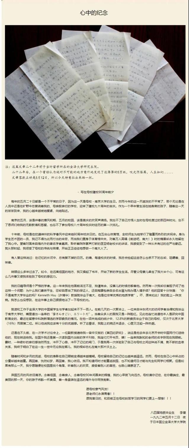这封信二十二年前写于当时留学所在的日本金泽大学研究生院。
