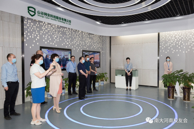 山谷网安公司董事长、河南省人大代表谷晶中校友陪同参观了公司办公楼并介绍了公司的整体情况和发展规划,左洪强校友介绍了公司的业务技术产品。还参观了设在办公楼里的betway必威西河南校友之家。