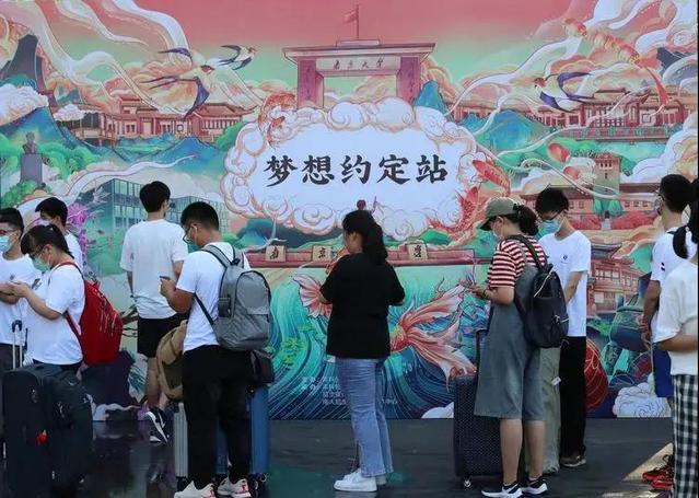 “愿所有努力不被辜负!”“GPA>4.6!”“寻得自己的价值!”充满喜悦的新生们把自己的心愿贴在了梦想约定站的展板上。