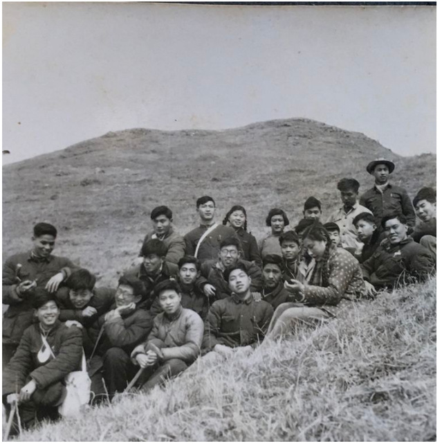 这张野外实习的五班同学在南京近郊幕府山合影,旧照上依稀认出当年的同学,他们中间有:李万荣、陆松年、凌小慧、张小云、林松恩、唐依筠、刘冬生、徐均涛、髙庆善、程同、沈成龙、肖永兴、王祖卿等⋯⋯。