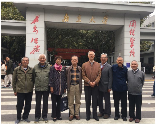 2018/10/20日,南京的金秋时节,我们 58年级地质地勘、水文专业部分同学在母校聚会,得到了南大校友会的大力支持,安排我们在《知行楼》活动,并在校门给我们拍摄集体照,这是我们六十多位老同学六十年后再次在一起欢聚时光的记载。