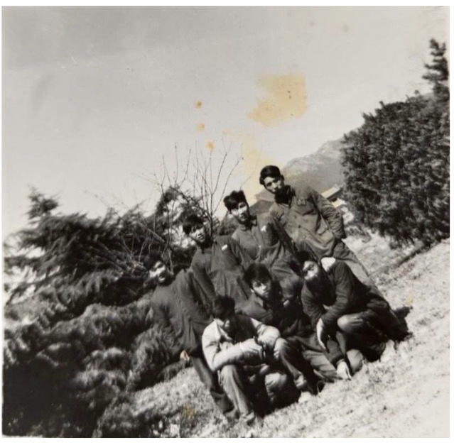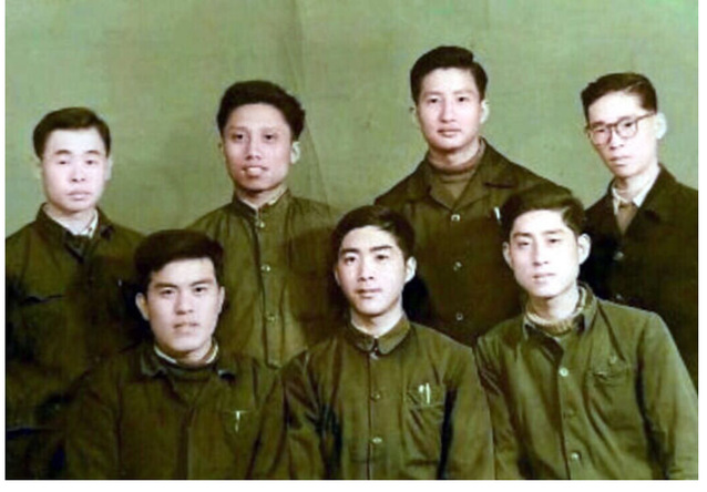 这張老照片摄于1963年秋季,在甘肃金川镍矿工作的金在淼同学出差到包头,与在包钢工作的六位同学汇聚一堂,留下了珍贵的照片。前排左起:高之铜、金在淼、高庆善,后排左起:江天伟、戴荣伦、康成德、李左衡。