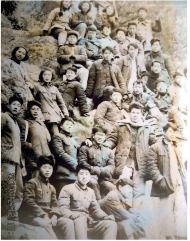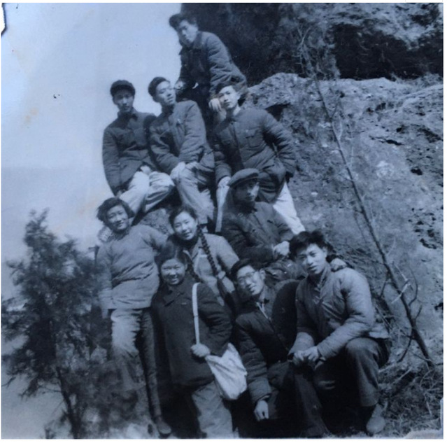地勘专业同学在长江燕子矶实习,老师给我们拍照留影。由前往后自左至右为:严克芬、本人、孙介其、王恵珍、过娟秀、李宗尧、张兴荣、王源瑞、陈增义、邹汉光。