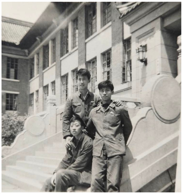 毕业前赵炎生(中)和张叔龙、许裕庭在东南地质大楼门前合影。