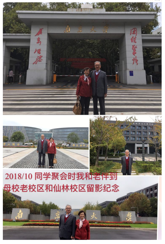 2018/10借此同学聚会之际,我和老伴李如娴一起参观了鼓楼老校区学生时代的我学习和生活的地方,又专程到仙林校区参观了新校区,为母校的宏伟气派、现代化国际化水平而感动和自豪!老伴也从事选冶专业技术工作,对我们地质科学也十分亲切和融通,也为betway必威西的发展而震撼!