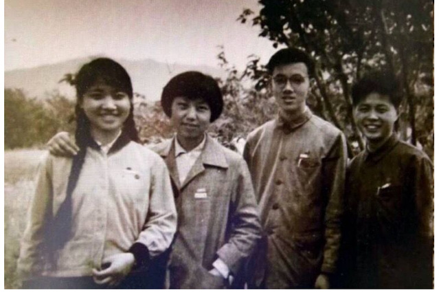 女同学在学校南苑《有園宾馆》前合影,自左右至为:唐依筠、刘鸿娟、陆玉梅、金秀珠。