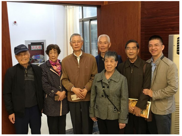 曾在西北甘粛金川一起奋斗的同学一起合影。自左至右为:乔宝根、黄榴轩、李万荣、王鑑炤及王夫人、金在淼、王鑑炤儿子。