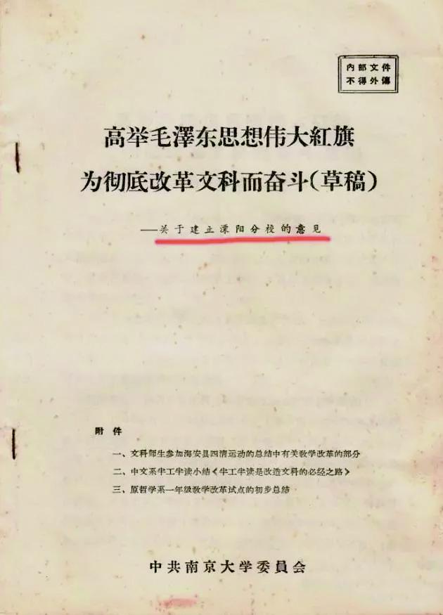 5月20日,匡亚明校长在溧阳分校作了《更高地举起毛泽东思想红旗,积极参加社会主义文化大革命》的动员报告(匡校长于5月14日已在校本部作过此报告),指出文化大革命的性质表面上是一场学术斗争,实是政治上的阶级斗争,是两条道路的深刻斗争。谈到文化革命的范围时,他说:对敌斗争,人人有责;大敌当前,涉及各人;文化革命,人人有份。
