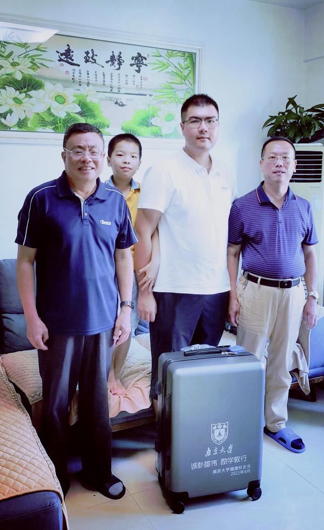 今年南大福建校友会继续延续“一只箱子一本书,带着校训去南大”的传统活动,由结对子校友出资为新生送去行李箱等礼物。其中宁德分会会长陈奇瑞、秘书长彭康强还亲自将行李箱送至新生家中。印有母校校徽、校训特色元素的行李箱让新生们提前感受身为新南大人的自豪,也成为新生们在机场、车站的“接头暗号”。